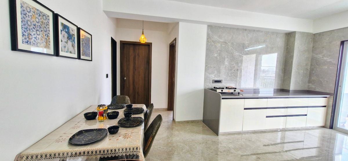 Et donem la benvinguda a Pulse by Staypreneur Homes! Viu Nashik en tota la seva esplendor. Aquest modern apartament de 3 habitacions ofereix un refugi acollidor per a famílies que exploren la ciutat, professionals en viatges de negocis o qualsevol persona que busqui un allotjament tranquil. Situat en una ubicació privilegiada a prop de MIDC i d'altres destinacions clau, ofereix un accés fàcil a atraccions, restaurants i entreteniment, alhora que ofereix la privacitat i l'espai que necessites per relaxar-te i tornar a connectar. Pulse: connecta amb l'energia de Nashik.