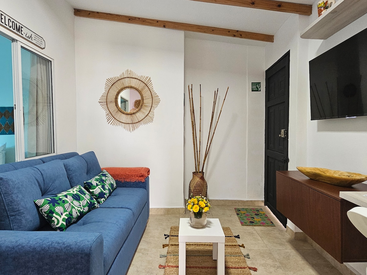 🌴 EXSTR APARTMENT • Villa del Peñon 301 Aquesta unitat de dos dormitoris i dos banys amb balcó és la combinació perfecta per a famílies, grups d'amics o nòmades digitals. Totes les pestanyes tenen aigua calenta, el dormitori té aire condicionat, televisor intel·ligent i un llit de matrimoni. Tots els serveis estan instal·lats i s'han dissenyat pensant en la teva comoditat. El barri d'El Peñon és una zona molt transitable amb molts restaurants i entreteniment en pocs minuts. La Colonial San Antonio està a només 3 blocs de distància.