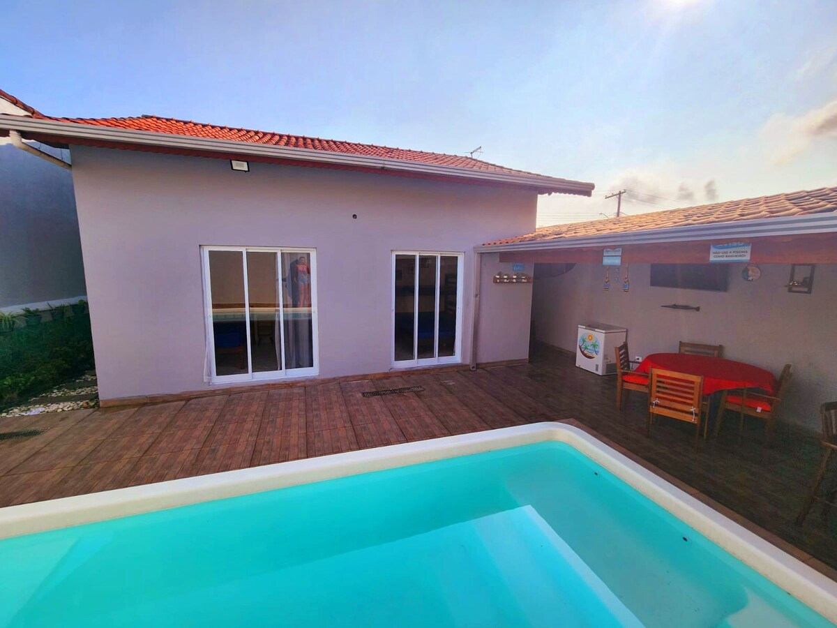 Casa ben situada i totalment equipada, al centre de la ciutat. Sala d'estar: amb sofà i televisor. Cuina: completa amb tots els estris, nevera, microones, batedora. Habitacions 1 i 2: llit doble, llitera i ventilador de sostre. Banys: interns i externs. A l'exterior: barbacoa, taula i dutxa exterior. La casa és a 50 metres de la platja, a prop del Boqueirão, supermercats, fleques i farmàcies. Notes: la ruta als espectacles de final d'any es pot fer a peu, en una mitjana de 8 minuts.