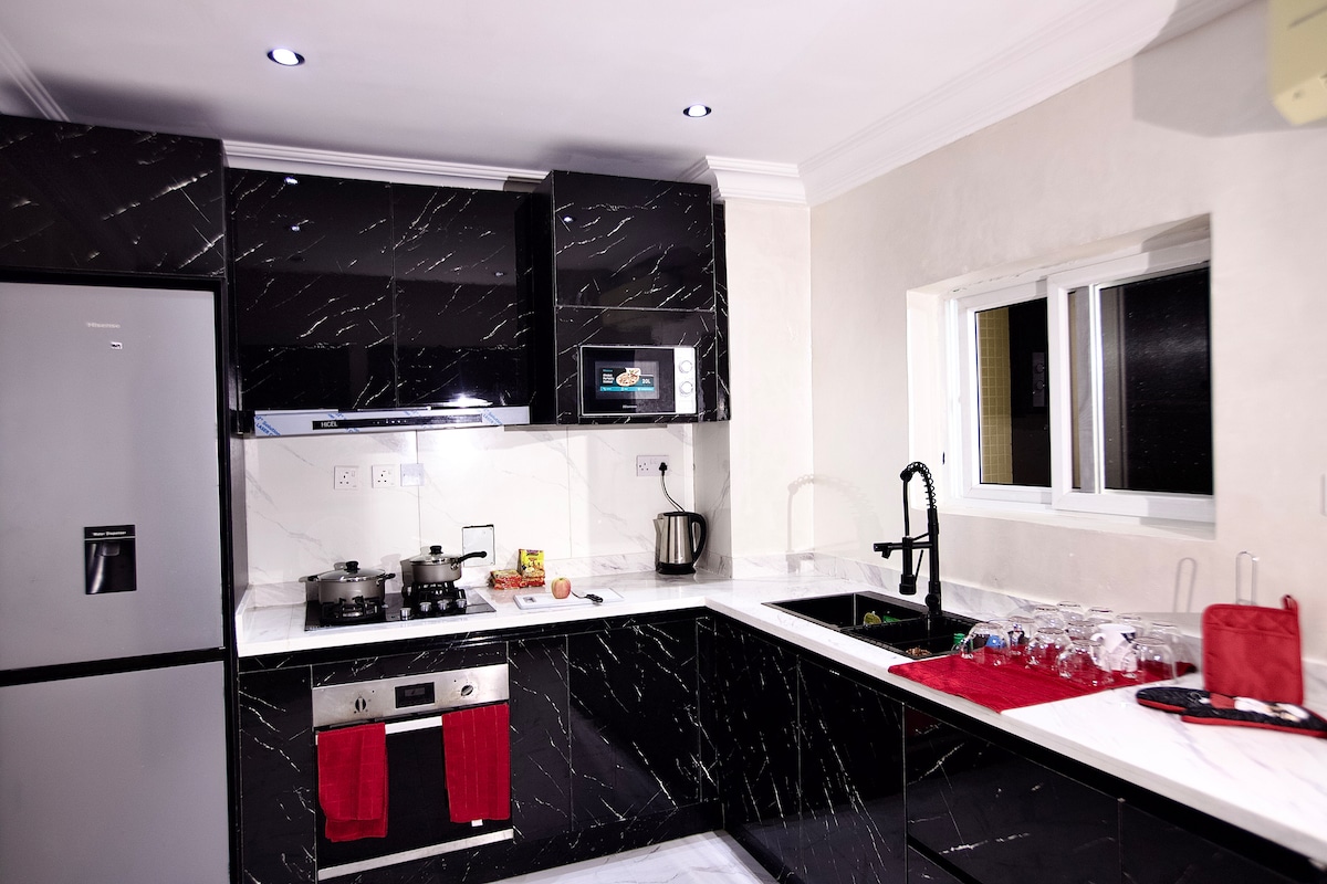 Descobreix Novara, un santuari elegant i NOVETOS al cor de Lekki. Aquest dúplex de luxe modern de 2 dormitoris combina comoditat i elegància amb una sala d'estar lluminosa i espaiosa, una cuina totalment equipada, wifi ràpida, televisor intel·ligent, PS5 i subministrament elèctric i seguretat garantits les 24 hores. Ara, a més, hi ha un gimnàs i una piscina comuns Gaudeix dels millors restaurants, platges i llocs d'oci nocturn de Lagos, que són a pocs minuts. Ideal per a escapades inoblidables, viatges de negocis i estades llargues.