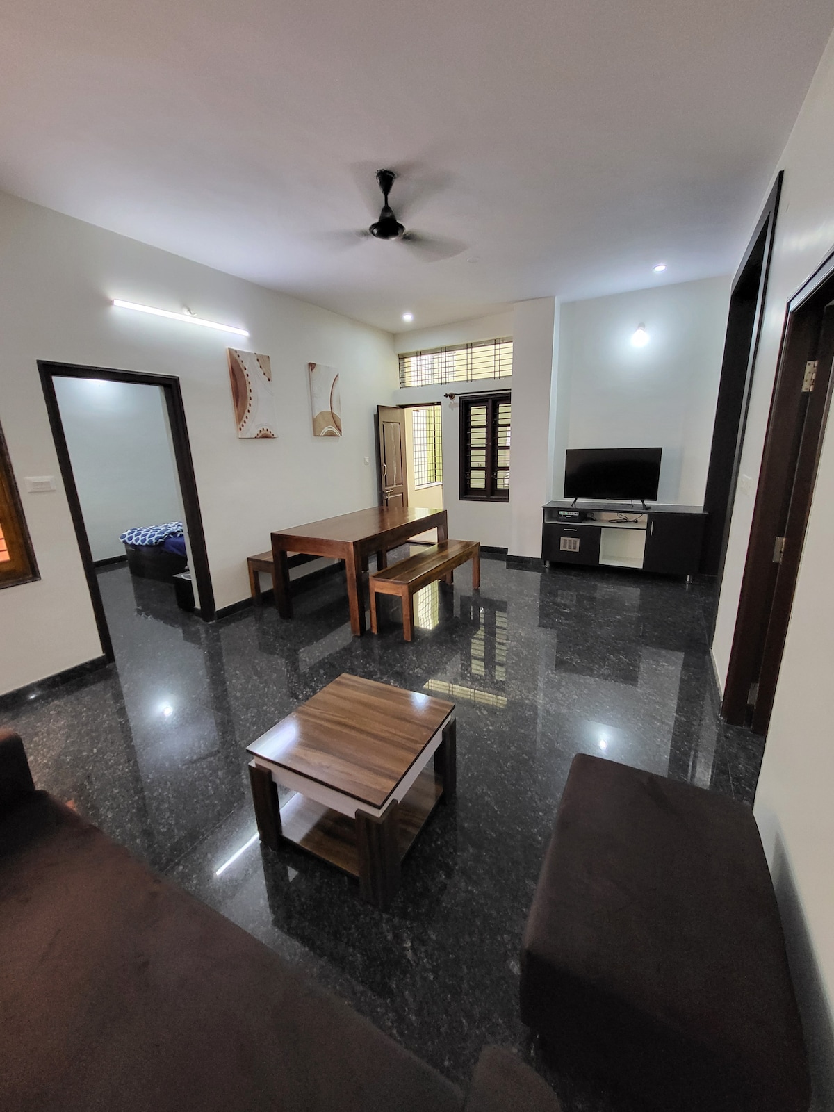 El nostre pis és espaiós, estètic i espaiós. Gaudeix d'una enorme sala d'estar/menjador, 2 dormitoris, 2 banys, una cuina totalment funcional i un balcó amb vistes a l'horitzó de la ciutat, que s'obre als turons de Chamundi. A la nostra terrassa, pots practicar ioga o fer-te una tassa de te i preparar-te per veure les postes de sol més boniques. Estem totalment equipats per allotjar treballadors a distància, hostes de llarga durada, famílies i viatgers corporatius, amb tots els serveis per gaudir d'una estada còmoda.