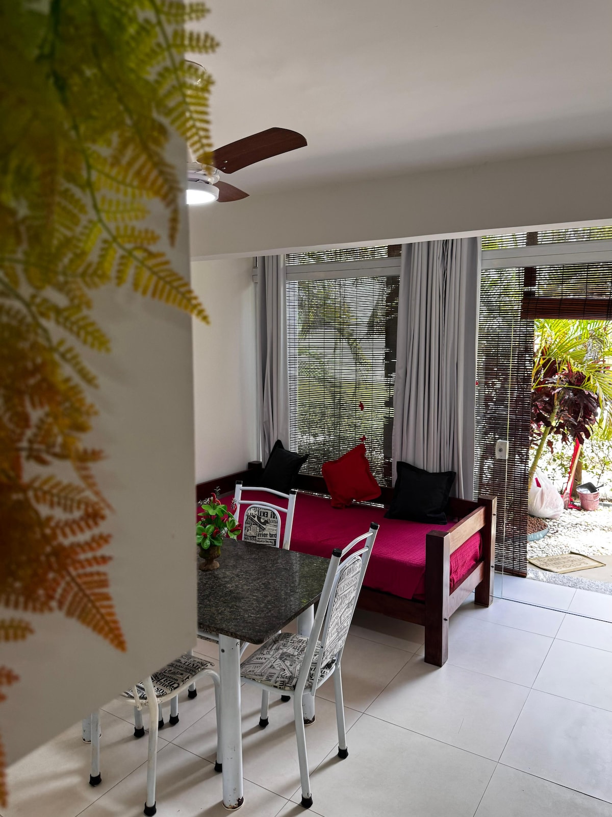 Bem-vindos! ALÉM DOS SONHOS IV é um conjugado cosy no 1ºandar com cozinha e 1 cama de casal, ar-condicionado, banheiro privativo. Localização excelente e silenciosa. 30mts da Praça Principal e 5min da 1a praia. Perto da Natureza Fornecemos enxoval completo de cama e banho e cuidamos da sua reserva do começo ao fim. *possível adicionar café da manhã à parte *temos parcerias com agencias locais para passeios e traslados *NOVO: Colocamos SMART TV :)