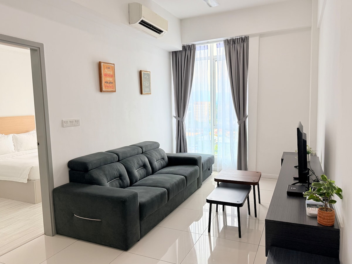 Dissenyada pensant en les famílies, aquesta residència ofereix una barreja perfecta de comoditat i comoditat. És prou espaiós per allotjar tota la família i està situat sobre el famós centre comercial IMAGO, al cor del centre de la ciutat de Kota Kinabalu. El nostre allotjament pot allotjar còmodament de 7 a 9 persones (com a màxim), però tingues en compte que els jocs de roba de llit no es proporcionen per al sofà llit.