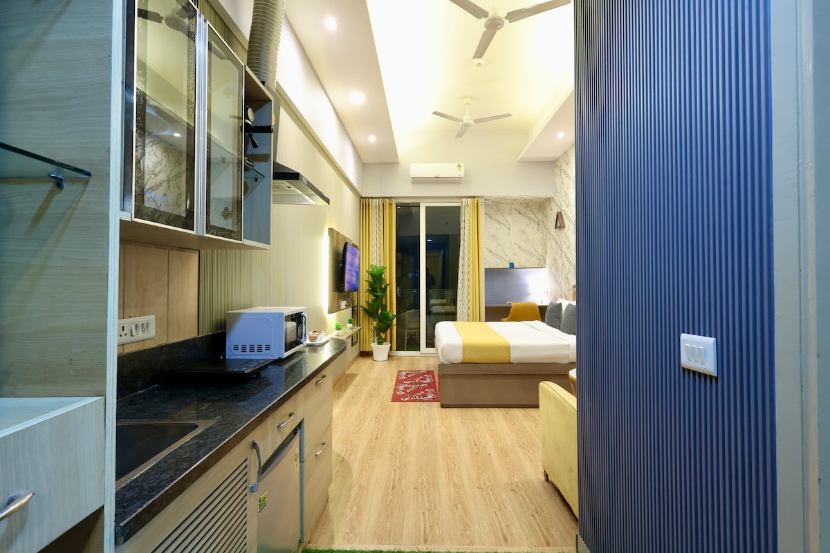 ✨ Et donem la benvinguda a Your Dreamy Retreat! ✨ Situat a la Supernova Spira, el tercer edifici més alt de l'Índia, aquest estudi de luxe ofereix una escapada única sobre la bulliciosa ciutat. A mesura que es relaxa l'hivern, relaxa't amb una tassa de te càlida i gaudeix de l'acollidora llum del sol mentre gaudeixes d'unes vistes impressionants de l'horitzó de Noida i del serè riu Yamuna. Gaudeix d'una escapada que se sent com un núvol per sobre del món!