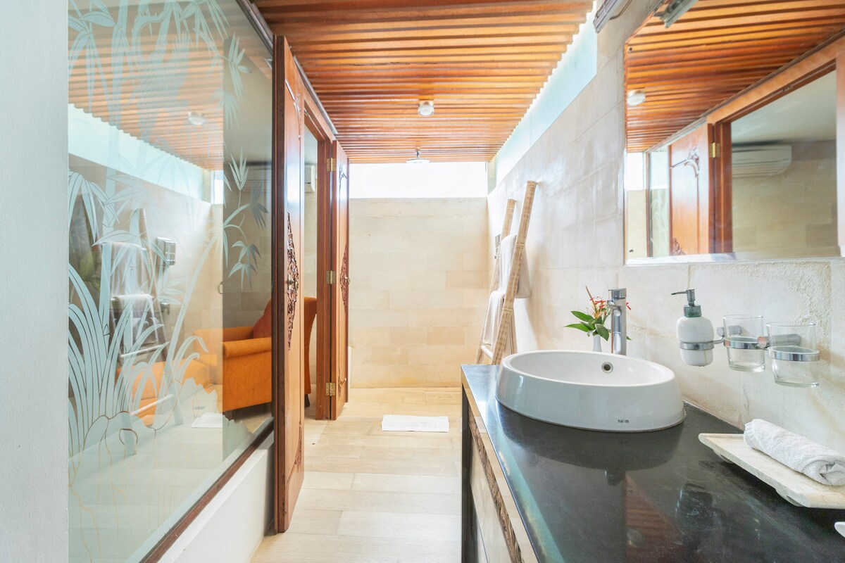 Aquest allotjament de luxe d'estil costaner mediterrani, situat a Berawa, destaca la seva ubicació cèntrica a Canggu. Habitacions tancades amb aire condicionat a totes les habitacions. A l'abric de la carretera principal, oferim el millor dels dos mons amb un ambient tranquil d'estil de retir i una gran varietat de platges i cafeteries a prop per explorar. A 450 metres a peu de la platja de Berawa. Disponible per a lloguer de llarga durada, a prop de l'escola Montessori i de l'escola CCS.