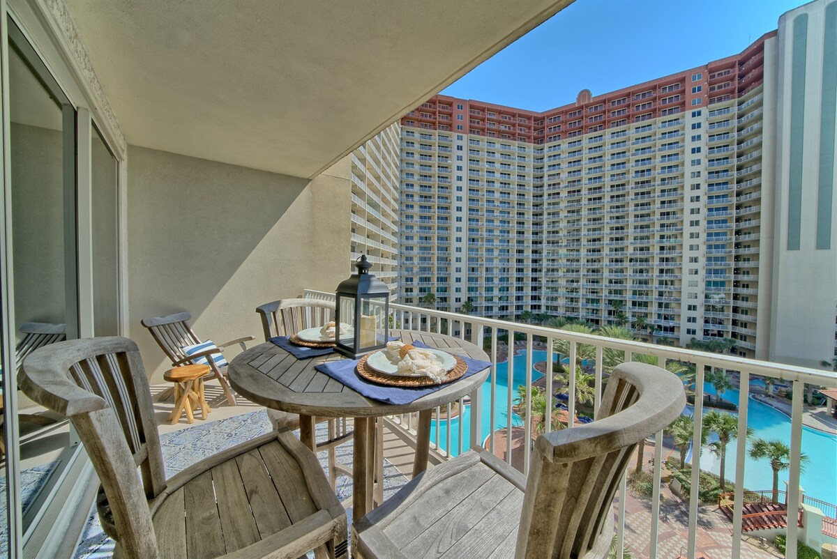 Pis a Tidewater al 16è pis amb vistes precioses al mar des del balcó. Aquest allotjament de 2 dormitoris i una habitació amb llitera té capacitat per a 8 persones i és ideal per a famílies i grups. Les característiques inclouen 3 banys complets, una suite amb llit king size, un dormitori amb llit queen size, un racó amb llitera, un sofà llit, wifi ràpid, una televisió intel·ligent de 70 polzades, rentadora/assecadora i una cuina totalment equipada. Accés fàcil a la platja, a peu de Pier Park i serveis de complex turístic que inclouen piscines, banyeres d'hidromassatge, restaurants i Starbucks. S'han proporcionat indicacions clares per a l'arribada, incloent-hi consells per evitar les hores de més trànsit a l'ascensor.