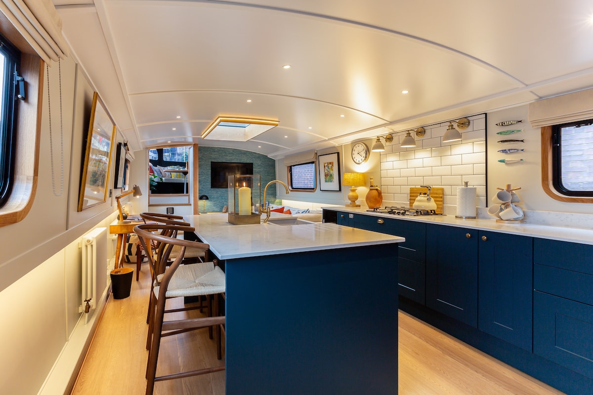February sale!! Text OMG for deets!Don’t be shy of the cold! The fireplace gets the boat toasty warm and the hot water for the shower is instant! We have robes slippers and hot water bottles for your comfort! Boat is currently in a prime location walking distance into town with loads of restaurants and shops on your doorstep and just a couple minutes from the tube. Start 2026 with a new adventure- bring your pooch to the most dog friendly spot and for alternative culture hit me up for tips!