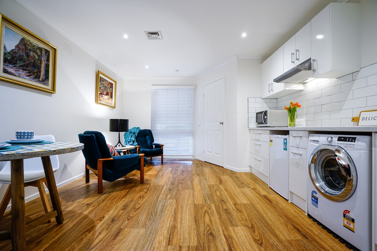 No podries demanar un lloc millor a Phillip Island per al teu propi estudi independent amb zona exterior, cuina americana i bany privat. Tot el que necessites està a poca distància a peu, platja de surf, platja tranquil·la, botigues, transport, a 10 minuts o menys. A prop també hi ha restaurants, activitats per a famílies, oci nocturn i transport públic. És ideal per a parelles, aventurers solitaris i viatgers de negocis. Cape Woolamai ofereix tota la bellesa de la platja, amb una sensació tranquil·la i relaxant.