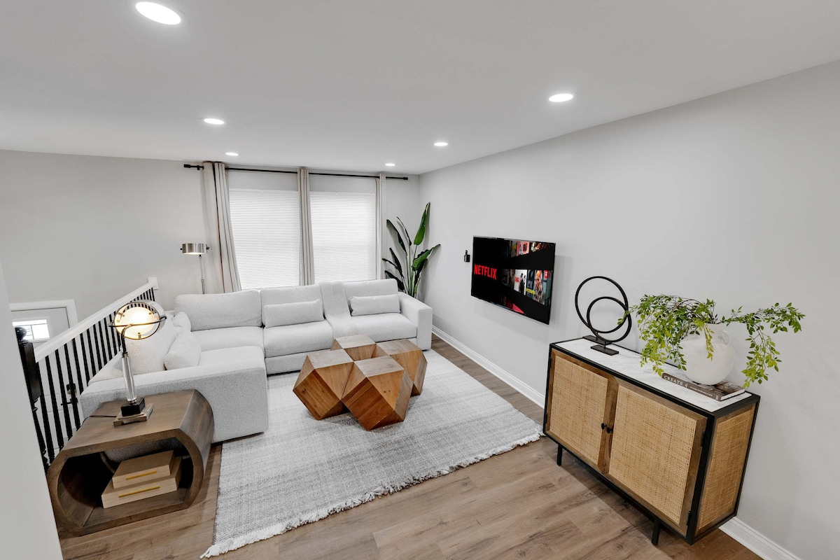 Diverteix-te amb tota la família en aquest espai elegant! - A minuts de Woodfield Mall, Legoland Waterworks Indoor Water Park, Golf, Outdoors i molt més! - Entrada privada - Velocitat ràpida d'internet d'1 GB - Televisor intel·ligent 4K de 60 K amb Roku Live TV - Pack n Play, trona, cotxet - Cuina equipada amb cafeteria i bar de gofres! - Zona de pati a l'aire lliure amb jocs - Zona d'escriptori de treball. - Foguera, forat de blat de moro, taula de billar - Llit «king size» a la part principal