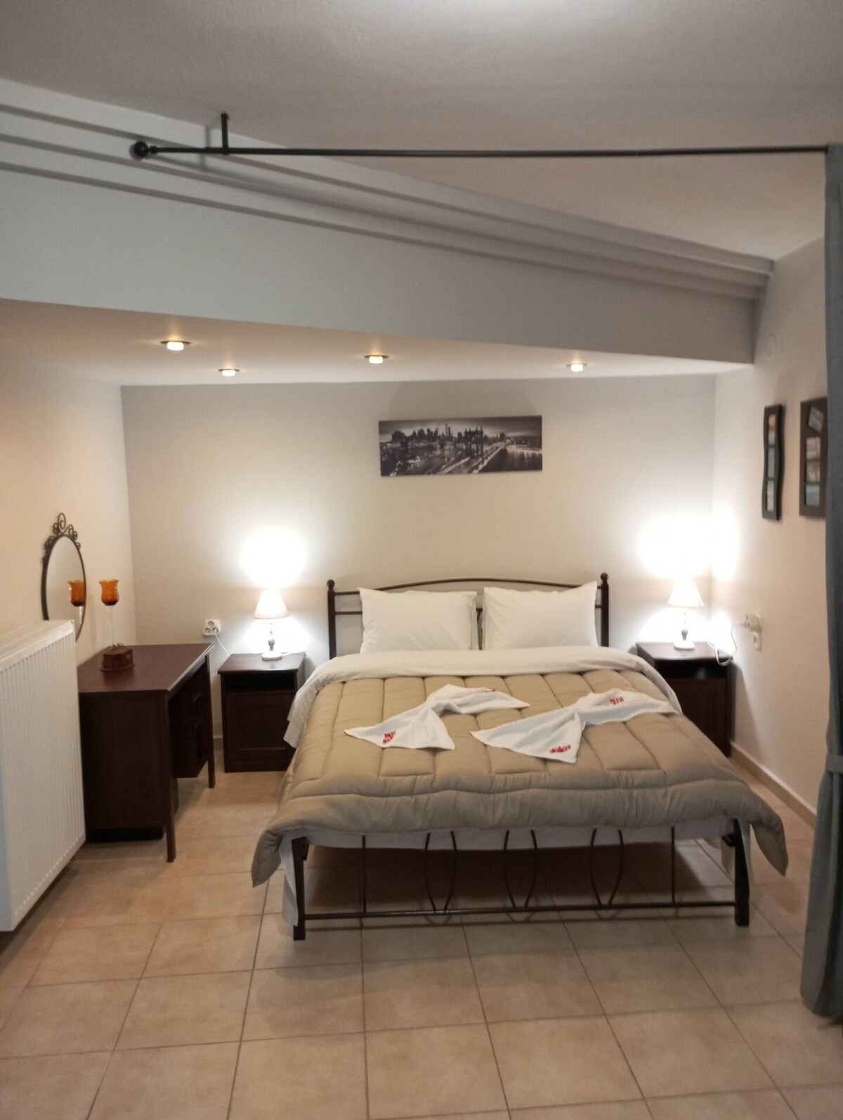 Està situat a la segona planta de l'edifici, a prop de la carretera de ronda de Volos, però prou lluny d'ella perquè no hi hagi cap problema de contaminació acústica. És el millor allotjament si vols anar de vacances amb transport. Preciosa vista panoràmica!