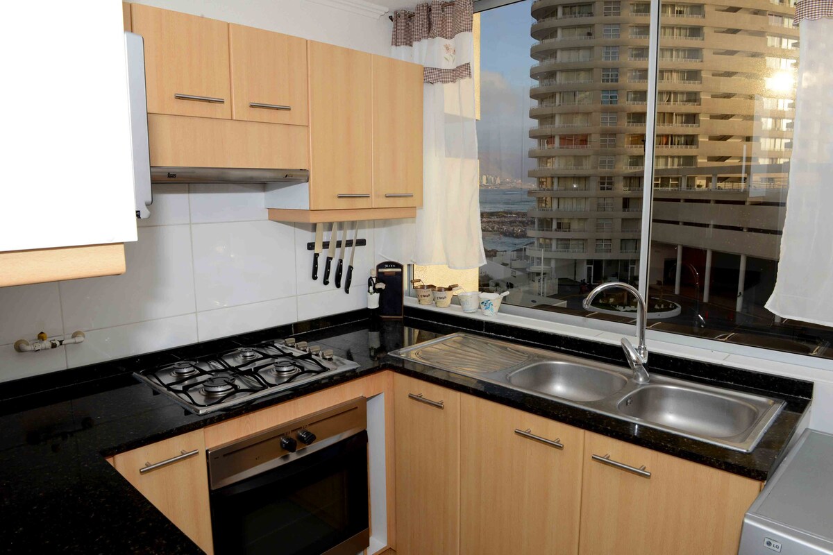 Nou acabat de lliurar, davant del mar, a 5 minuts a peu de Playa Cavancha, al centre del passeig marítim de Baquedano, centre històric, fires d'artesania, pubs, museus i molt més, transport públic a mà, parcs públic recentment inaugurats, vistes panoràmiques al mar, accés ràpid a la platja principal de Cavancha, accés al parc, piscina pública, barrejat amb la comoditat d'un apartament nou, modern i totalment equipat.