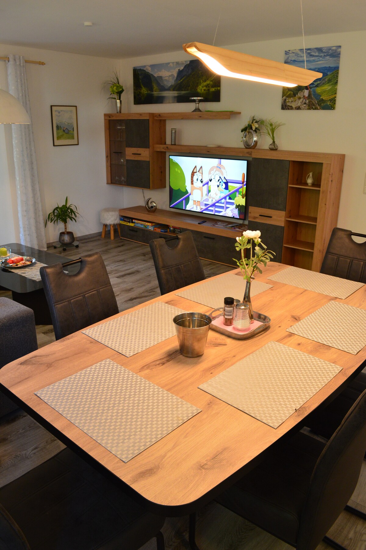 Our bright, charming apartment in Pfronten accommodates up to 5 guests and offers a spectacular view over the rooftops of Pfronten and the Allgäu mountains. Ideally located for exploring Neuschwanstein Castle as well as numerous ski and hiking areas. Start your day with breakfast on the balcony while enjoying the panoramic mountain views – the perfect retreat for nature lovers and anyone seeking relaxation.