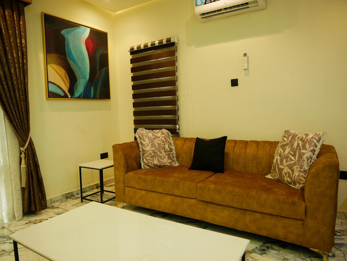 Et donem la benvinguda a Elmstead Luxury Aprt, el teu elegant refugi a Lekki Ikota. Aquest refugi de 2 dormitoris i 2 banys ofereix aire condicionat, un televisor de 65 polzades a la sala d'estar, un televisor de 43 polzades als dormitoris, wifi il·limitat i gratuït i electricitat les 24 hores amb inversor i energia solar. Gaudeix d'un accés independent amb pany intel·ligent, aparcament gratuït, una rentadora a l'allotjament i un castell inflable per a nens. 1 neteja gratuïta per a estades de 5 a 6 nits. A prop del Centre de Conservació de Lekki, Mega Chicken, Blackbell i Blemco. Perfecte per a viatgers solitaris, hostes de negocis, famílies o estades llargues