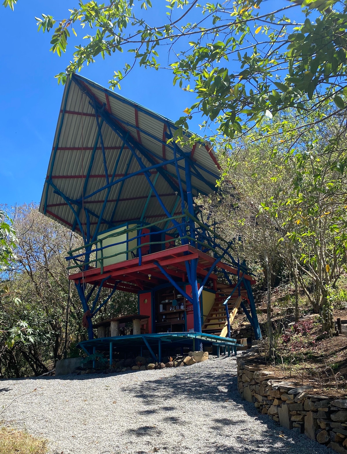 Kapetsowa és una obra mestra única de l'arquitectura, situada als boscos nebulosos de Monteverde, Costa Rica! 🌿 Aquest refugi acollidor ofereix vistes panoràmiques a la natura, un disseny ecoxique i accés a excursions de senderisme i vida silvestre a prop. Ideal per a parelles o viatgers solitaris, gaudiràs d'una connexió wifi ràpida, una cuina completa i un ambient tranquil. Gaudeix de les estrelles brillants i de les cuques de llum abans de dormir... Desperta't amb el cant dels ocells, passeja pels camins i després relaxa't amb una tassa de cafè a la coberta. Reserva la teva escapada al bosc avui mateix!