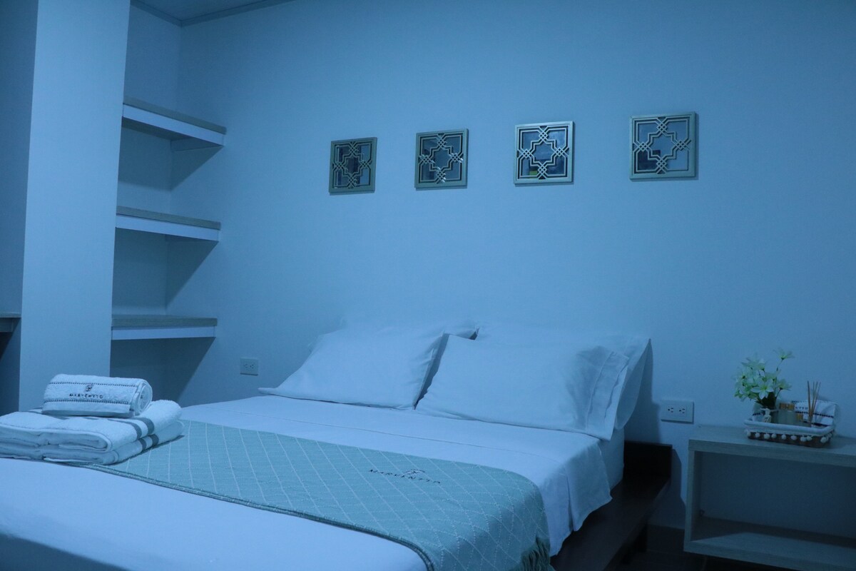 Pis estudi còmode per a 3 persones amb 1 llit doble i 1 llit individual. Disposa d'aire condicionat, bany privat i cuina americana totalment equipada, opció perfecta per a aquells que viatgen per feina i turistes. Està situat en un barri tranquil i segur a la zona central de Tumaco i té un accés excel·lent als serveis de transport. MÀXIM 3 HOSTES, SENSE VISITANTS. NO S'ADMETEN ANIMALS DE COMPANYIA::