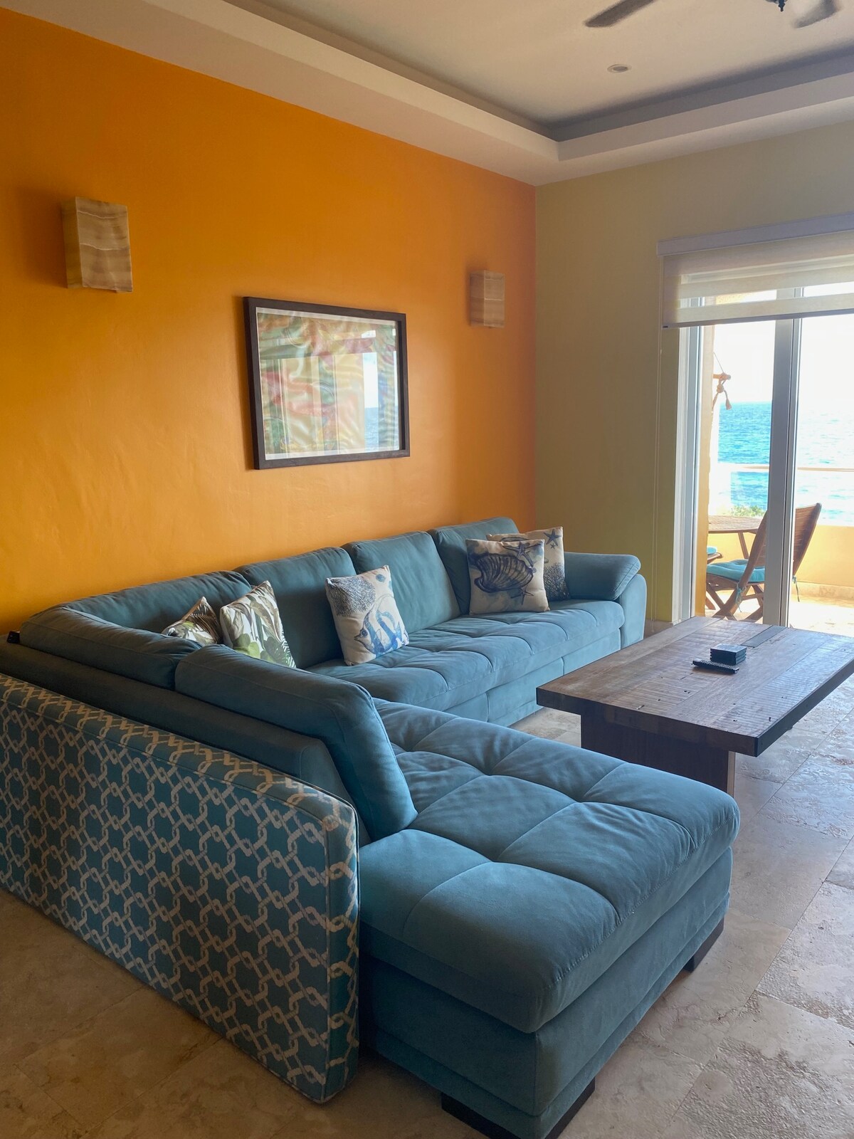 Casa relaxant de tres pisos a la vora del mar amb vistes al Carib, directament a la passarel·la del Malecón. 3 dormitoris, 4 banys, sala d'estar i cuina. Balcons amb vistes a l'oceà a cada planta. Fabulós pati a la terrassa amb seients de palapa, menjador, piscina profunda i una vista de 360 graus. Cèntric, al costat del Malecón del Carib, a només unes quantes illes de North Beach, del ferri i de restaurants, però prou lluny de l'enrenou. Hi dormen còmodament 5 persones, fins a 7. No s'admeten animals de companyia.
