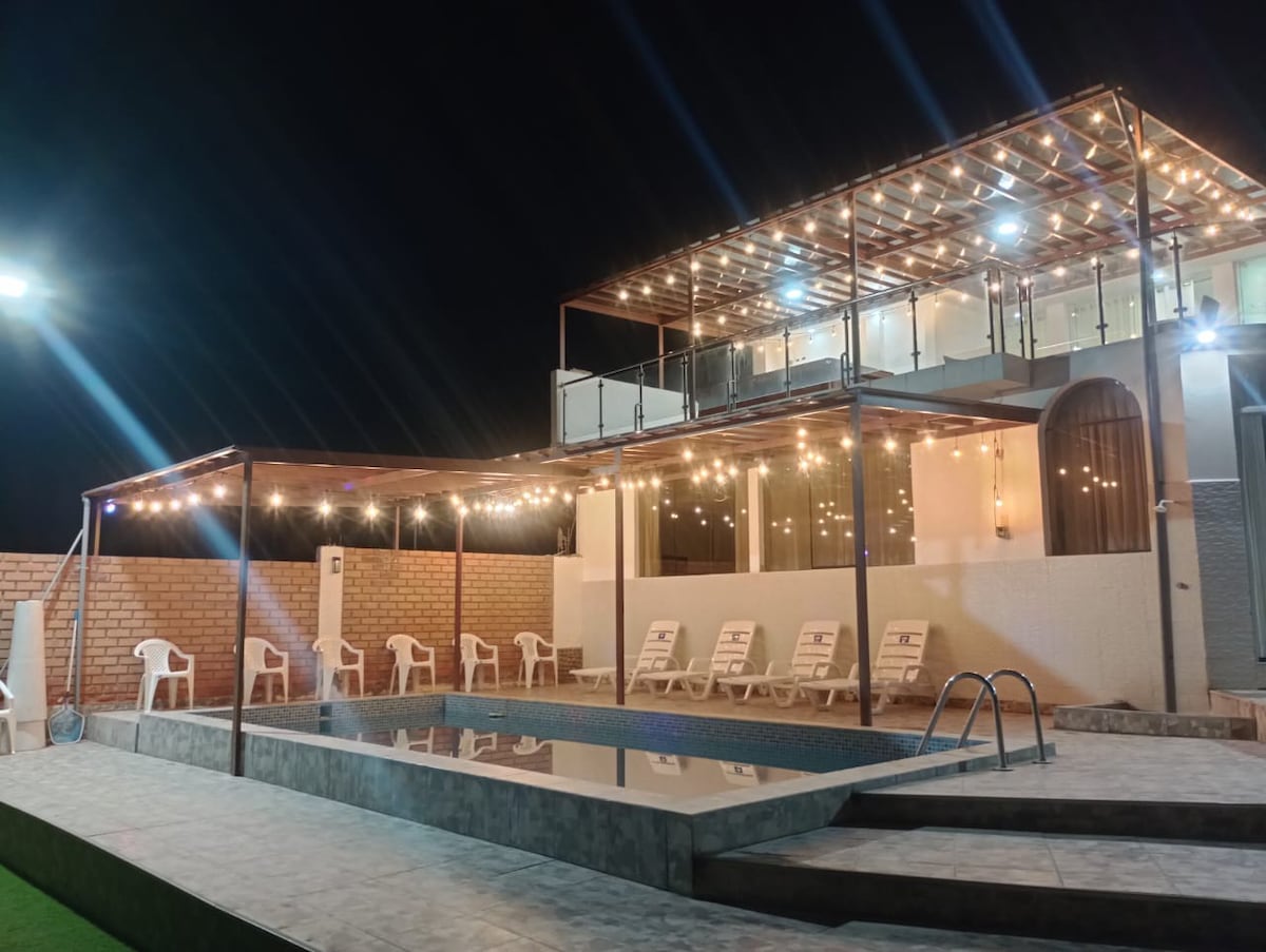 Amplia casa de playa y campo de dos pisos con piscina y juegos recreativos (mesa de billar, fulbito de mesa, tenis de mesa y sapo). Se acomoda a su requerimiento, hasta para 15 personas, cuenta con cinco habitaciones, sala comedor, cuatro baños completos, cocina con vajilla para 15 personas, urbanización privada, cochera, amplia terraza, zona de parrilla y zona de fogata.