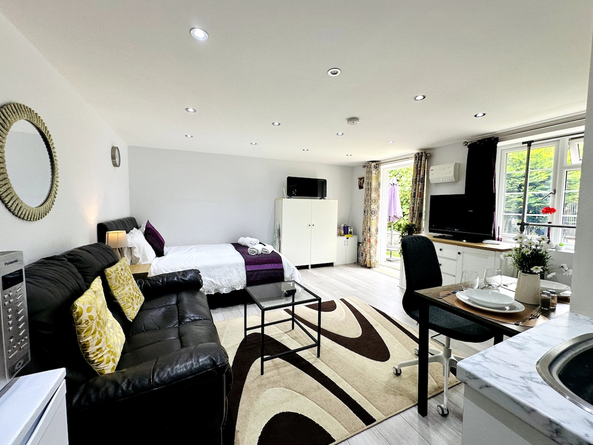 Un pis estudi de nova construcció i ben dissenyat adossat a una casa victoriana amb entrada pròpia i aparcament fora del carrer. La zona principal consta d'una habitació i un bany privat que ha estat dissenyat per donar a l'espai una gran flexibilitat i un ús múltiple. A només 12 minuts de: la bonica ciutat de Richmond i l'estadi de rugbi de Twickenham. A 5 minuts del riu Tàmesi, estació de tren, botigues i restaurants. El centre de Londres està a 30 minuts en tren. Tingues en compte que es tracta d'una carretera principal concorreguda.