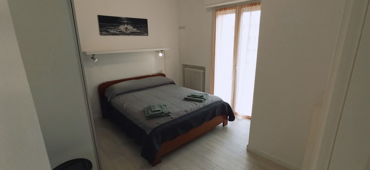 Acollidor estudi a la primera planta, a poca distància a peu del mar, a 5 minuts en cotxe de Rimini Fiera i a 10 minuts en autobús del centre històric Està equipat amb porta de seguretat, aire condicionat, rentadora, cuina amb forn i microones, bullidor elèctric, tot el que necessites per cuinar, llençols i tovalloles. A la planta superior, pots gaudir d'una terrassa on pots prendre el sol o sopar a la llum de les espelmes. Aparcament al carrer, si n'hi ha Lloguer de bicicletes amb reserva