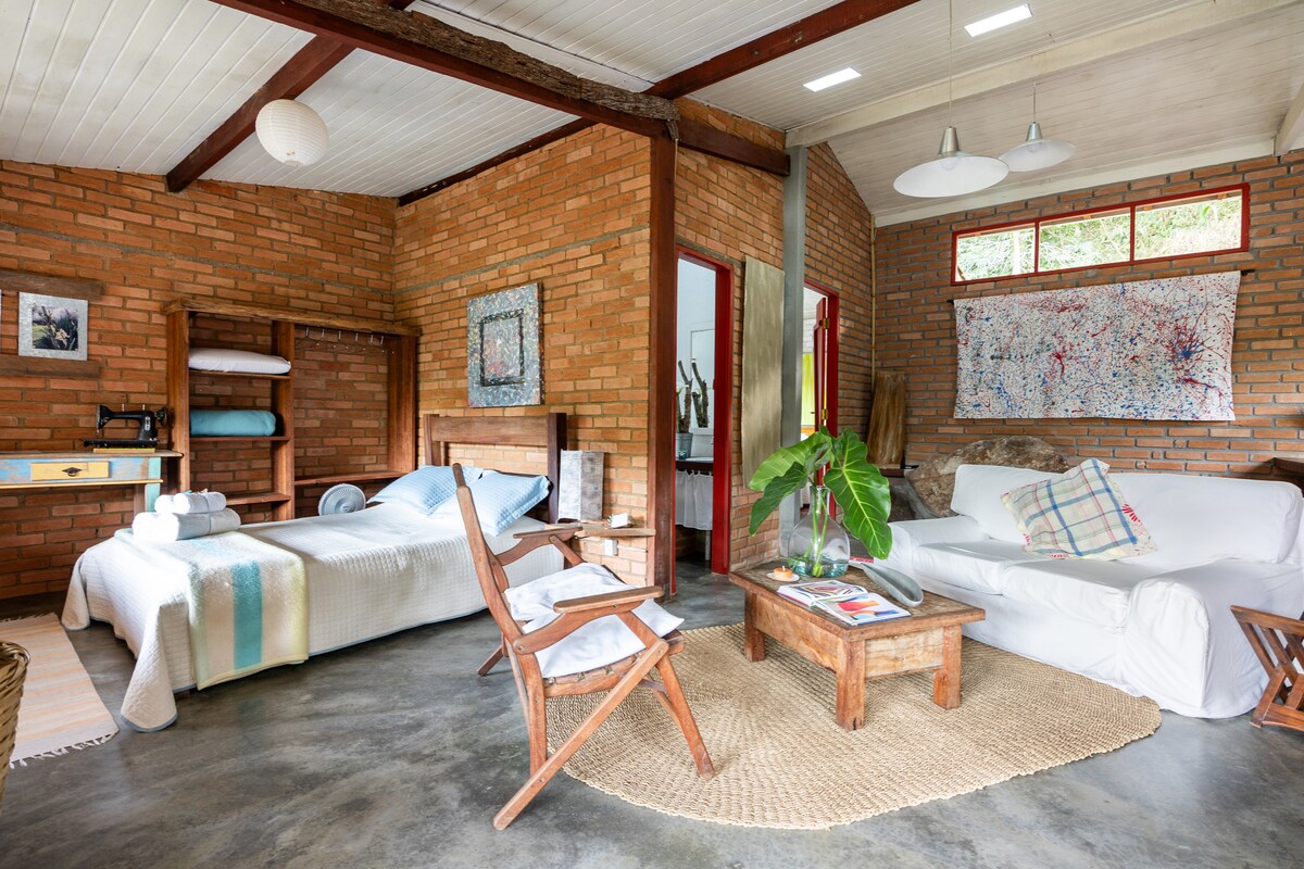 Desperta't, mira com surt el sol, pren-te un cafè, contempla la natura que t'envolta, fes un bany d'immersió a l'alba, reconnecta Relaxa't en aquest espai acollidor en plena natura a Mantiqueira Mineira. Situada a una alçada de 1650 metres, la cabana està al mig de la muntanya a la serralada de Mantiqueira, envoltada d'un bosc i a 50 metres d'un sortidor d'aigua de mina, el so de les aigües del qual es sent des de la coberta. És des d'aquesta generosa terrassa que pots veure Pedra Preta i part del Parc Nacional d'Itatiaia.