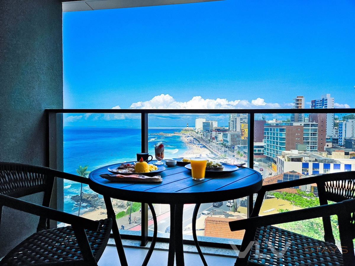 Gestionat per @ Insider.Bahia- Apartament amb vista al mar, a pocs passos de la platja del Farol da Barra, amb una decoració acollidora i molt elegant. Apartament dormitori i saló, amb aire condicionat, espai perfecte per a l'oficina de casa amb wi-fi d'alta velocitat, balcó ampli i acollidor, cuina americana totalment equipada. L'apartament disposa de plaça de pàrquing gratuïta. Situat a prop del fort "Farol da Barra", les platges, els museus, els restaurants i els bars, l'espai és una invitació a les belleses de Salvador.