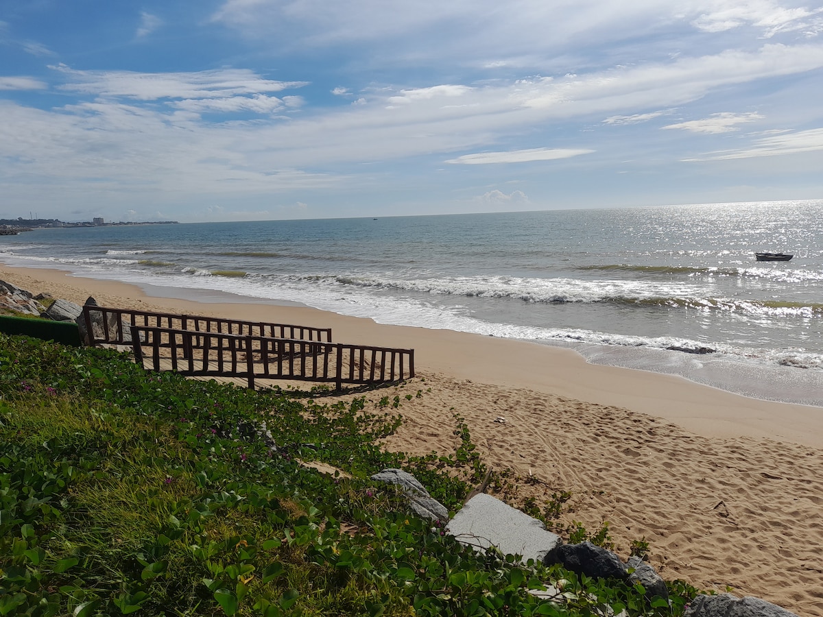 Casa gran a primera línia de platja, ben situada, amb 4 suites amb aire condicionat i ventilador i un dormitori més, sala d'estar enorme, balcó espaiós amb barbacoa, zona verda per a l'esport i té un aparcament al costat al carrer posterior de la casa. A més de disposar d'un espai adequat per a l'oficina a casa. Porta tota la família a aquest gran lloc amb molt d'espai per divertir-te.