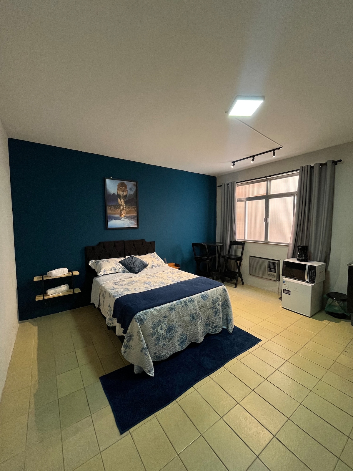 Abrace a simplicidade neste lugar tranquilo e bem-localizado. Estúdio com integração do quarto com a cozinha onde pode fazer um lanchinho assistindo televisão em banquetas altas com muito charme. Ideal para quem está a trabalho ou lazer. Próximo a mercado, farmácia, hospital. Bem no centro da cidade. Uma ótima opção para quem quer conhecer a nossa cidade.