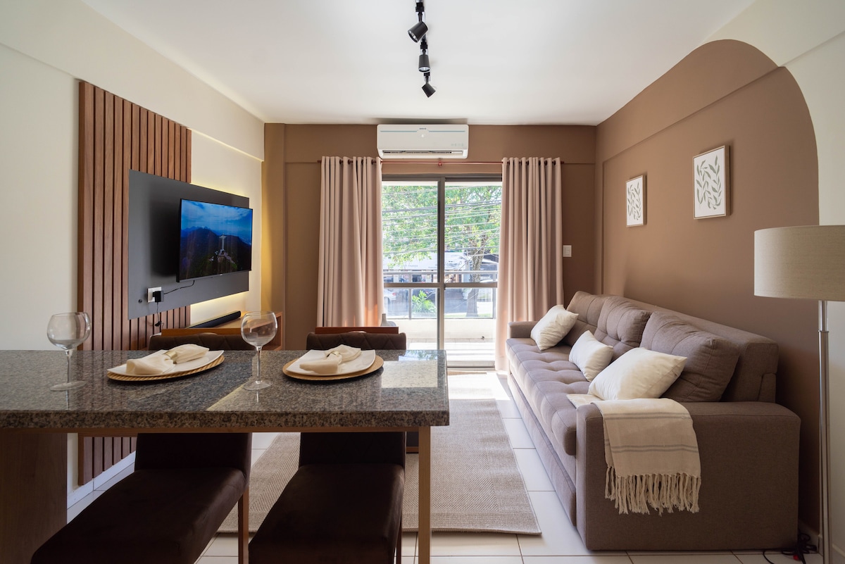 Amb una ubicació privilegiada davant del Sambadrome, estàs literalment davant de la platja de San José: surts de l'edifici i en 30 segons estàs trepitjant la sorra i el Passeig Gastronòmic. Ideal per descansar o treballar amb tot a l'abast. L'apartament és còmode, lluminós i equipat per a una estada agradable al cor de la ciutat. Serveis de primer nivell Vistes panoràmiques de la platja des de la terrassa, quinchos amb graelles i una piscina per gaudir amb els amics o la família.