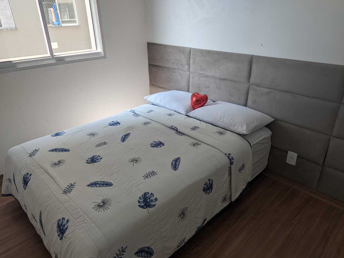 Apartament complet amb 1 plaça d'aparcament (apartament de barri) però a 9 minuts del centre de Suzano. (valor 50 % més barat que la competència🤑) Rentavaixelles, microones, nevera, televisor, robot aspirador i ventilador. Aprofita-ho. Ubicació privilegiada: Accés fàcil. A prop del centre, A 8 minuts de Shopping Itaquá. Accés fàcil a l'aeroport de Guarulhos. A 15 minuts de Blue Beach (parc aquàtic, A 30 minuts del parc aquàtic Magic City Important: pis sense ascensor (1 plaça d'aparcament)