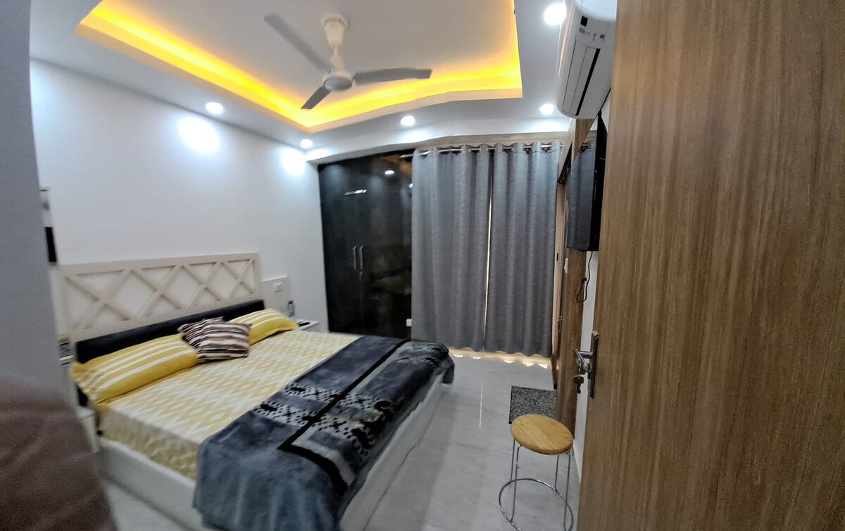 El primer pis de 2 Bhk que compleix tots els requisits ✨ - 2 dormitoris ( dormitori principal, segon dormitori) - 2 llits «king size». - Una sala d'estar espaiosa amb una disposició de seients còmoda. - 2 banys ( 1 a cadascun dels dormitoris) - Cuina petita (amb tots els estris bàsics de cuina disponibles i equipament i serveis, és el lloc perfecte per preparar els teus àpats preferits) - Una zona de balcó compartit que connecta amb l'apartament, que pot ser l'espai perfecte per a les teves passejades nocturnes. Reserva ara!