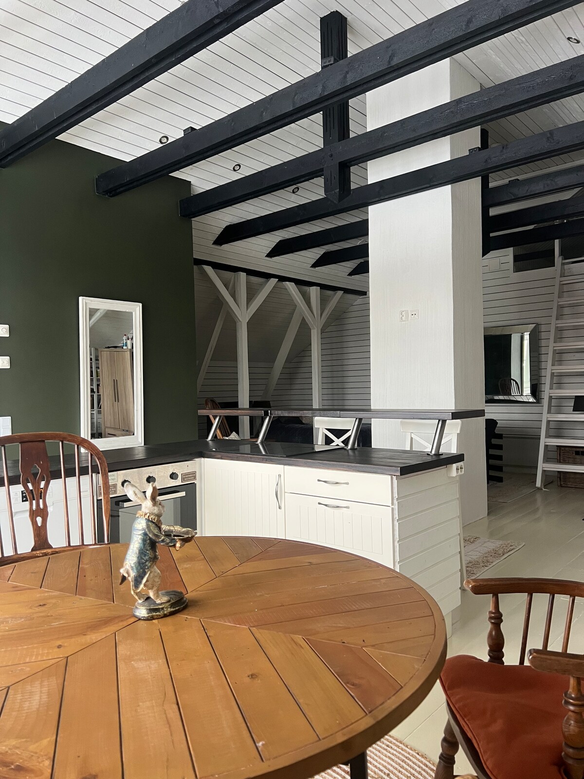 Pis encantador i lluminós amb finestres de sostre i vistes als terrats i a l'església de la roca. Atelier ha servit com a lloc de treball de notable pintor finlandès a principis del segle XX. L'espai històric de l'atelier s'ha convertit més tard en un pis, però malgrat les comoditats modernes, ha mantingut el seu encant i l'ambient inspirador. La ubicació és perfecta per als visitants interessats en els museus d'art, el centre de la ciutat i els passejos per la zona de la badia de Hietaniemi i Töölönlahti.