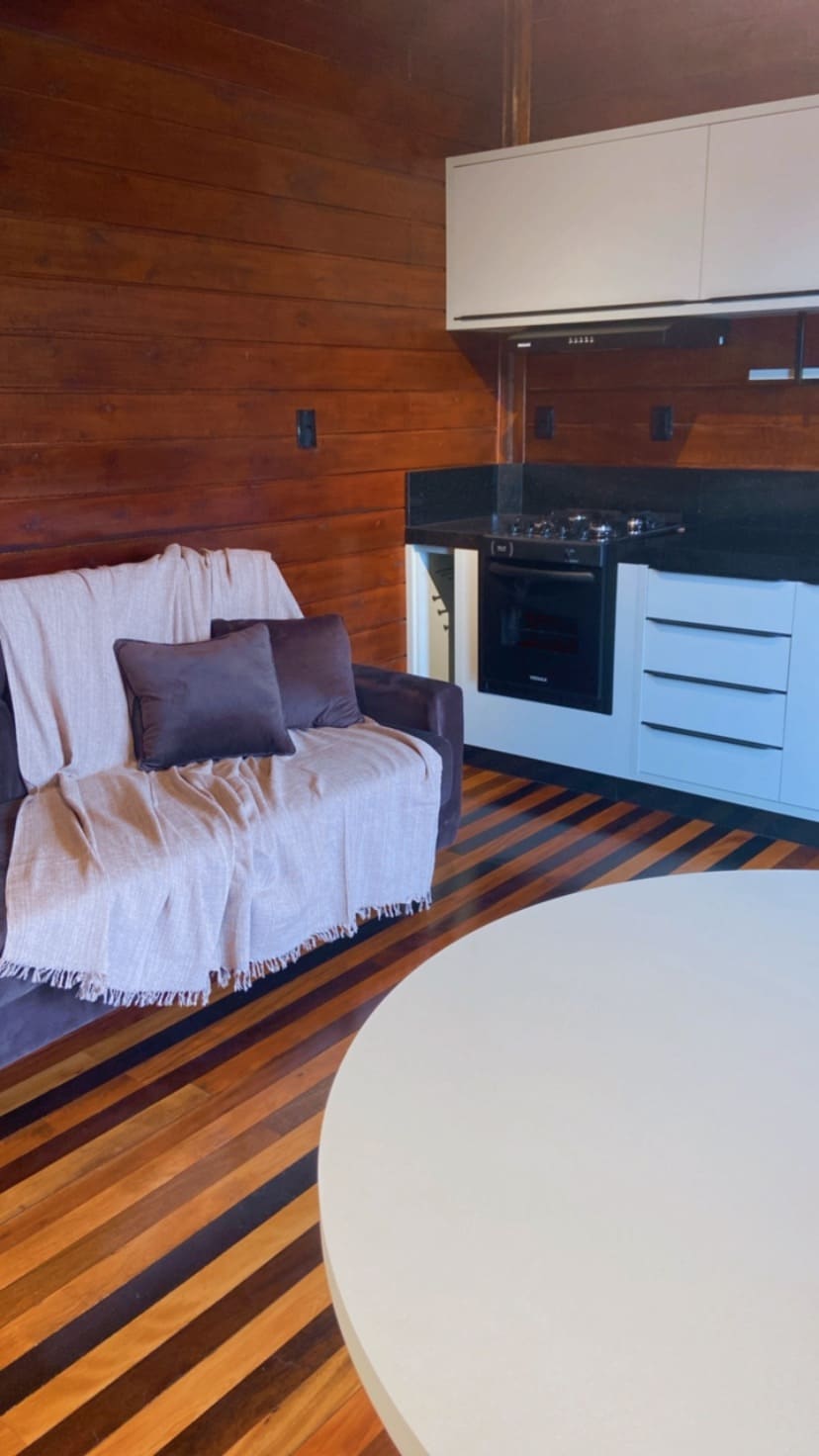 Relaxa't en aquest lloc únic i tranquil. El xalet es va construir pensant en oferir un lloc on les parelles tinguin moments romàntics amb privacitat i molta comoditat! Tot construït amb fusta de demolició i pintura a l'estil dels anys 30, terra de fusta barnitzada, però el seu interior té un llit de caixa i banyera d'immersió, cuina completa amb forn i microones, estufa d'inducció, minibar que ofereix una experiència única.