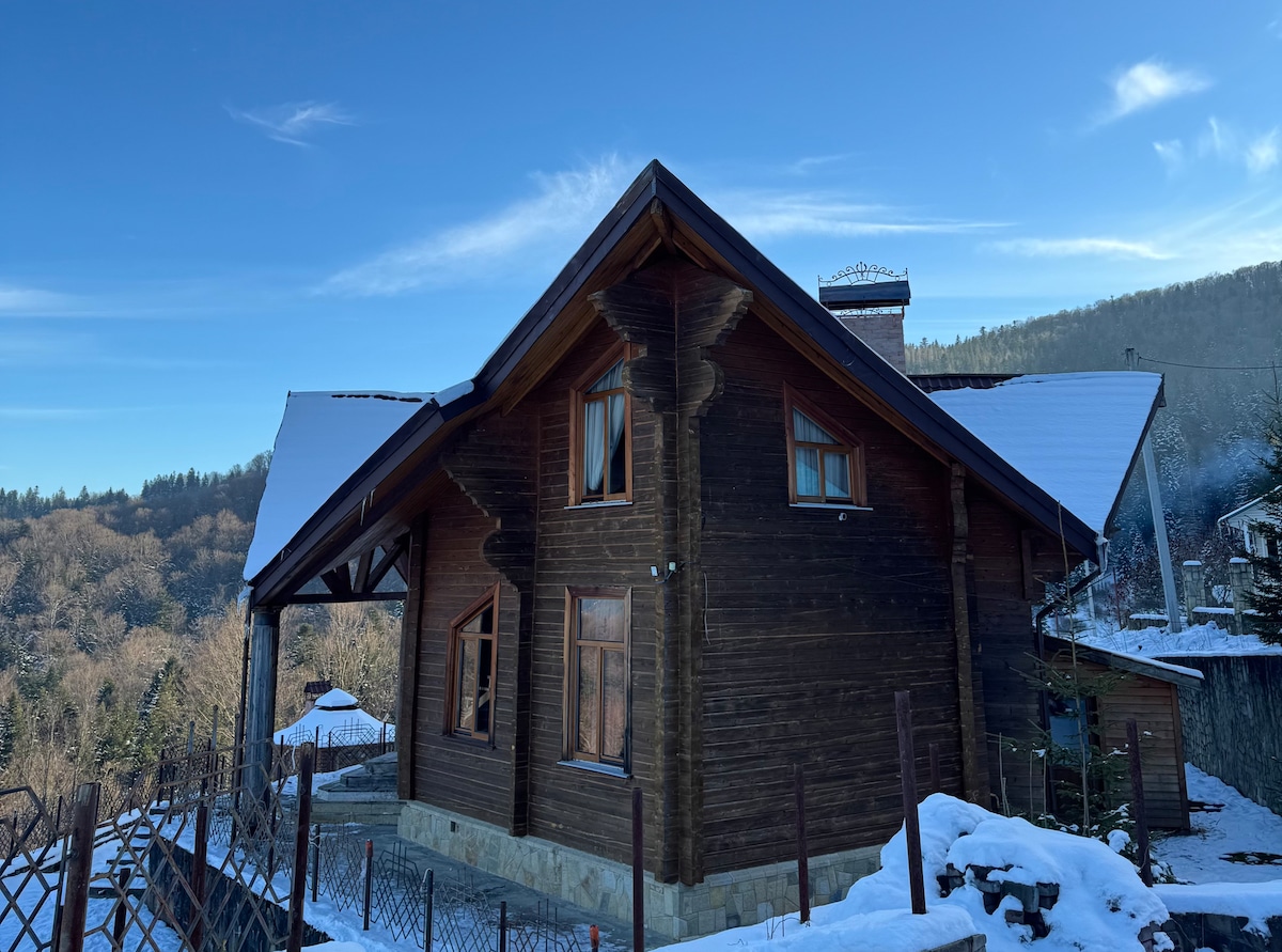 En quatre nivells, connectats per escales de caracol hi ha: cuina amb bany, acollidora amb sofà i llar de foc, banyera d'hidromassatge amb dutxa, dormitori amb bany. Els mobles i els acabats estan fets d'una gran varietat de fusta de valor. La casa es troba en un carrer tranquil al centre de Yaremche. Les finestres donen al penya-segat de l'elefant. Davant de l'estany i d'un bon espai verd. A prop hi ha el riu Prut, el supermercat, la pizzeria i McDonald 's. Hi ha plaça d'aparcament.