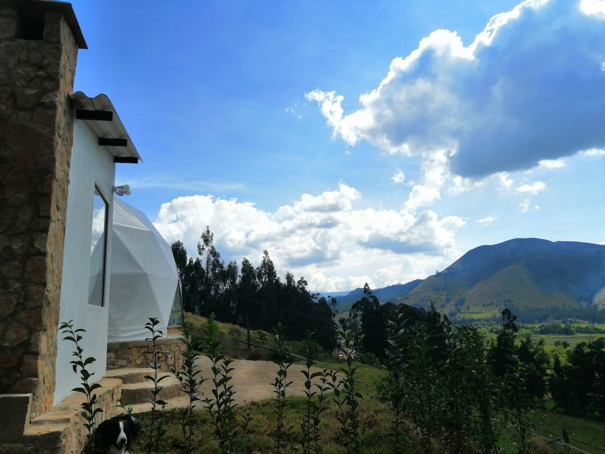 The architecture of the place is in harmony with the environment and nature and the environment, achieving a formidable space for rest and inspiration. The cabin overlooks the Valley of the Willows, ideal for relaxing, disconnecting and resting. It has a green area, space for a campfire, kitchen, hot water, wooden terrace, parking area, Roku TV. Located 90km from the city of Tunja, 14km from the city of Sogamoso, 8 km from Lake Tota