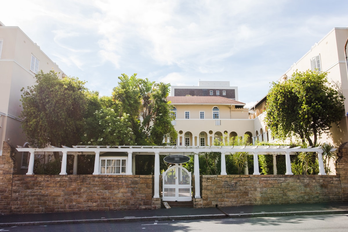 Busca un santuari en la bellesa d'aquest antic edifici d'estil victorià que és el lloc ideal per relaxar-te tranquil·lament. Les portes del balcó s'obren amb molta llum i aire fresc del jardí. Els 2 llits individuals d'un dels dormitoris es poden convertir en un llit «king size» per a una segona parella o es poden mantenir separats. Els hostes hauran d'iniciar sessió amb el servei de seguretat a la porta. M'allotjaré al meu estudi de pintura, que no queda gaire lluny, i estaré disponible en tot moment per ajudar-te. Long Street i el barri dels voltants tenen una col·lecció increïble de restaurants, bars i cafeteries. Tots els elements bàsics es troben a poca distància a peu, incloent-hi supermercats i farmàcies. L'apartament disposa de garatge propi per aparcar el seu cotxe de lloguer i es troba a 100m d'on es congreguen els taxis a l'espera de tarifes. Per a estades curtes, un cuidador de la casa arribarà abans de l'arribada i a la sortida. Per a estades més llargues, vindrà un parell de vegades a la setmana (després de les 11h; dilluns i dijous); no hi ha cap cost addicional, la neteja addicional només ajuda a mantenir les coses manejables. Estarà disponible per rentar i planxar si ho sol·licites. Nota al garatge de l'aparcament: el garatge amb pany es va dissenyar per a vehicles de mida sedà normal i, malauradament, no tindrà capacitat per a grans furgonetes de 4x4 i panells. Per als hostes que vagin a utilitzar un vehicle més gran, hi ha un centre comercial a la carretera que disposa d'aparcament nocturn (R100/nit)