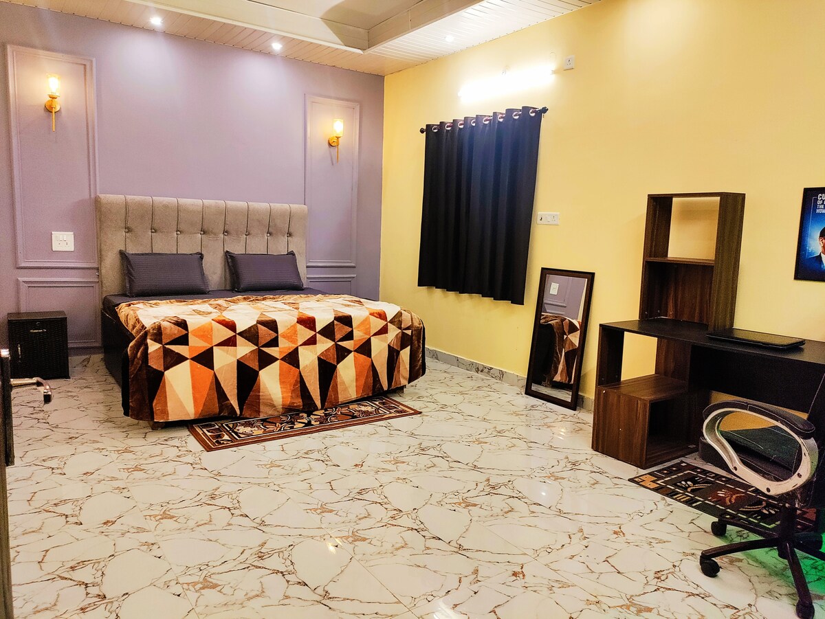 Unwind in our peaceful 230 sq ft room offering a cozy and comfortable stay near the airport and railway station. Designed with soothing interiors, a king-size bed, and modern amenities, it’s the perfect retreat for travelers. Enjoy the calm ambiance, refreshing comfort, and easy connectivity—ideal for both short stays and relaxing getaways.