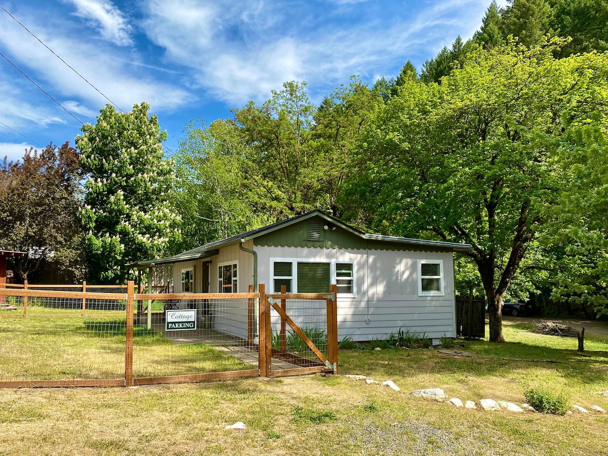 Caseta d'una habitació en una microgranja de 5 hectàrees, a la vora del riu Applegate, a prop de les vinyes. Aquesta acollidora casa rural és una mini granja amb cabres i pollastres al llarg de la ruta del vi de la vall d'Applegate. Camina fins a Red Lily Vineyards! Gaudeix de la foguera privada (quan no sigui temporada d'incendis forestals) amb el kit de s'mores de cortesia o camina fins al riu i respira. Estem a 15 minuts de la històrica ciutat de Jacksonville, on es troba el Britt Summer Music Festival. Wine Country Farm Stay dot come.