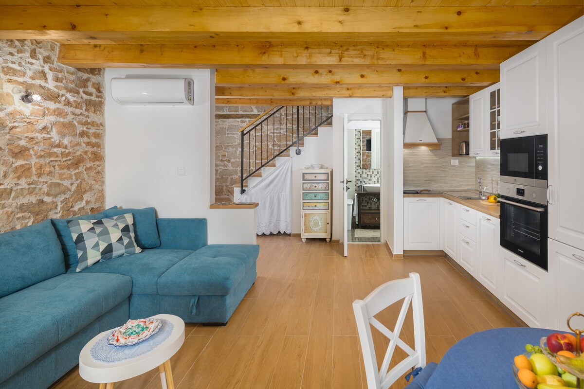 Istrian Hideaway – enmig de vinyes en un petit poble d'Istria, passa les vacances abraçades per la natura pintoresca La típica casa de pedra d'Istria del segle XIX es va ampliar amb una ala moderna, una piscina climatitzada i una sauna amb estudi de jardí per a les teves vacances d'estiu. La casa té 3 dormitoris amb aire condicionat, amb llits dobles i sofàs llit, dos banys grans, un vàter separat, una cuina i una sala d'estar espaiosa amb una llar de foc i una finestra enorme amb vistes al jardí.