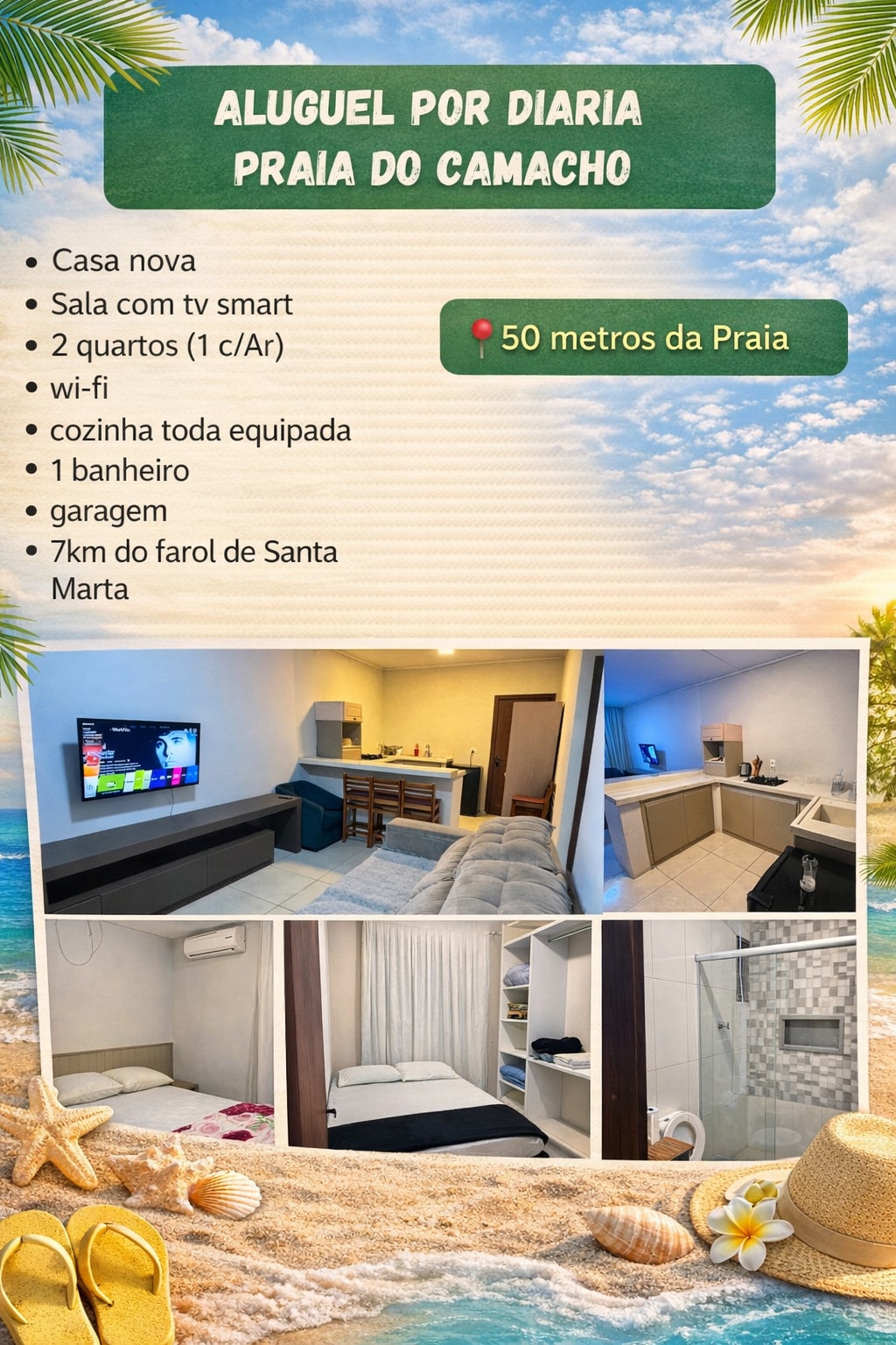 Casa Aconchegante Perto da Praia! Desfrute de tranquilidade em uma casa murada, com câmera de segurança na área externa para sua proteção. Estamos a apenas 50 metros de um mercado e a 600 metros da Praia do Camacho. Relaxe jogando sinuca e aproveite momentos em família. A localização é ideal, a 5 minutos de carro do Farol de Santa Marta e da Praia do Cardoso. Além disso, lanchonetes próximas garantem ainda mais praticidade. Venha curtir dias de paz e diversão!