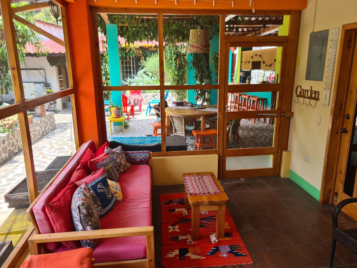 La nostra casa d'hostes està ben situada a Santa Cruz, al llac Atitlán. Aquesta suite lluminosa, lluminosa i espaiosa ofereix cuina completa, bany impressionant, llençols de qualitat, llit còmode i està bellament decorada. Pati i jardí per passar l'estona després d'un dia d'exploració. Seients al terrat perfecte per prendre un cafè al matí o un còctel a la tarda. Hi ha cafè, te, aigua filtrada i elements bàsics. Internet Starlink: molt fiable i ràpid. Ubicació segura: portes tancades/teclat numèric. Vine i troba la màgia al Sweet Spot!