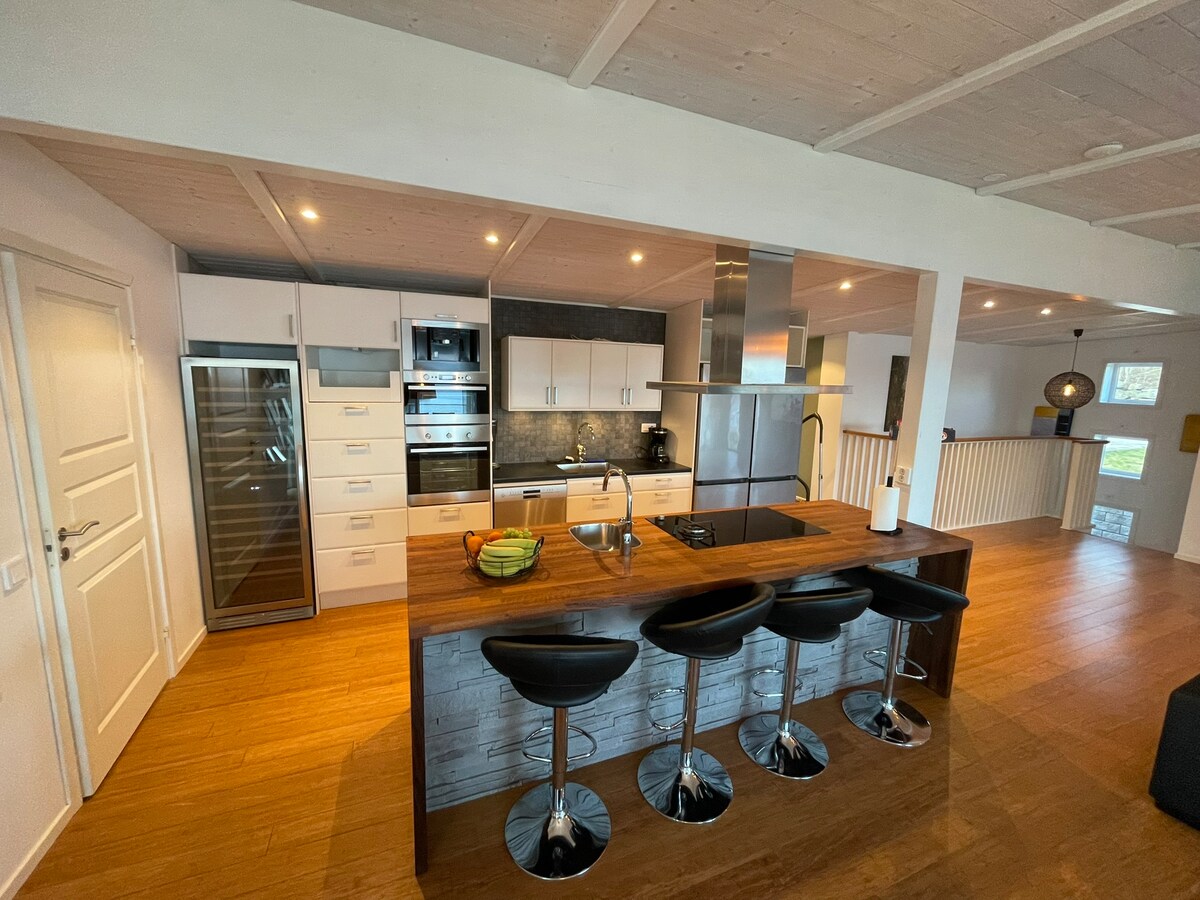 Casa de vacances de nova construcció (2020-2021) situada en un cap sense veïns a la vista. Petita platja privada poc profunda amb vaixell i motor elèctric. Cuina de llenya a la sala d'estar. Bona pesca amb zander, perca, pica, etc. Bona wifi. Sauna. Bolets i baies. Aparcament privat gran a la parcel·la. Activitats a prop : Isaberg Mountain Resort, High Chaparral, Store Mosse National Park, Ge-Kås Ullared, Knystaria pizzeria , Knystaforsen (guia blanca) Tiraholms Fisk Aquí vius de luxe, però al mateix temps amb la sensació de "tornar a la natura"