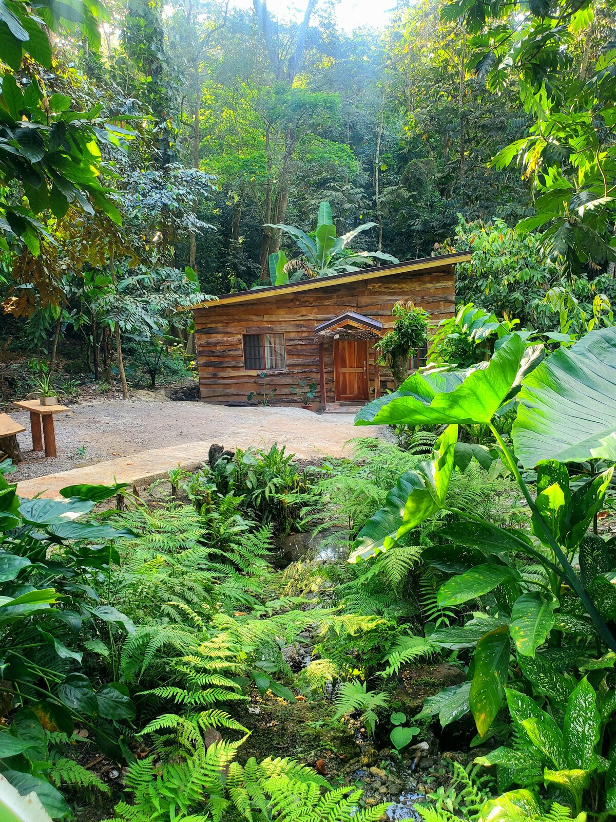Aquesta caseta d'un dormitori d'estil boho, situada al bosc a la vora d'un riu tranquil, combina aïllament i aventura. A només 30 minuts d'Ocho Rios, una font natural flueix al teu pati davanter, creant una característica d'aigua serena. A l'interior, gaudeix d'una sala d'estar, cuina i menjador de concepte obert amb una decoració càlida. El dormitori principal, amb una porta rústica, s'obre a una àmplia dutxa de vidre i a una pèrgola de fusta. Gaudeix de la teva beguda preferida mentre escoltes el cant dels ocells i el xiulet del rierol.