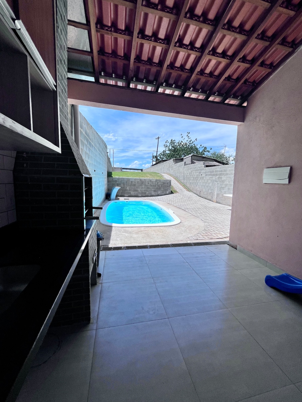 Una casa rural perfecta a la vora d'una presa. Ideal per a aquells que busquen pau amb la família i els amics (capacitat màxima per a 9 persones). Casa amb 3 dormitoris (tots amb aire condicionat) i dos banys (intern i extern), televisió intel·ligent, barbacoa, forn de llenya, cuina completa, wifi. Piscina amb aigua, parc infantil. Tenim una coberta flotant i una rampa d'accés a la presa, porta el teu vaixell, moto aquàtica o caiac. S'admeten animals de companyia Fàcil accés per l'autopista Tamoios, a prop de l'església de Rosa Mística.