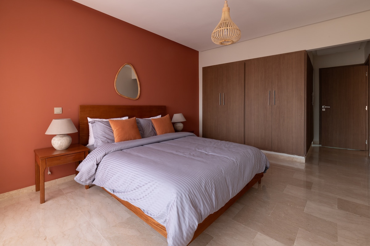 Gaudeix de la comoditat del nostre modern apartament de 2 dormitoris al cor de Gueliz. A poca distància a peu dels jardins Majorelle (800 m), de la plaça Eden (500 m) i d'un passeig relaxat fins a Jemaa El Fna (25 minuts), el nostre allotjament és el teu refugi acollidor! Gaudeix dels clars cels d'hivern des de la piscina al terrat amb unes vistes impressionants de la ciutat i la muntanya, o relaxa't a la piscina climatitzada de la planta baixa després d'explorar la medina. També tindràs accés complet a un gimnàs privat, una sauna i un hamam, perfectes per a uns acollidors dies de Nadal a Marràqueix.
