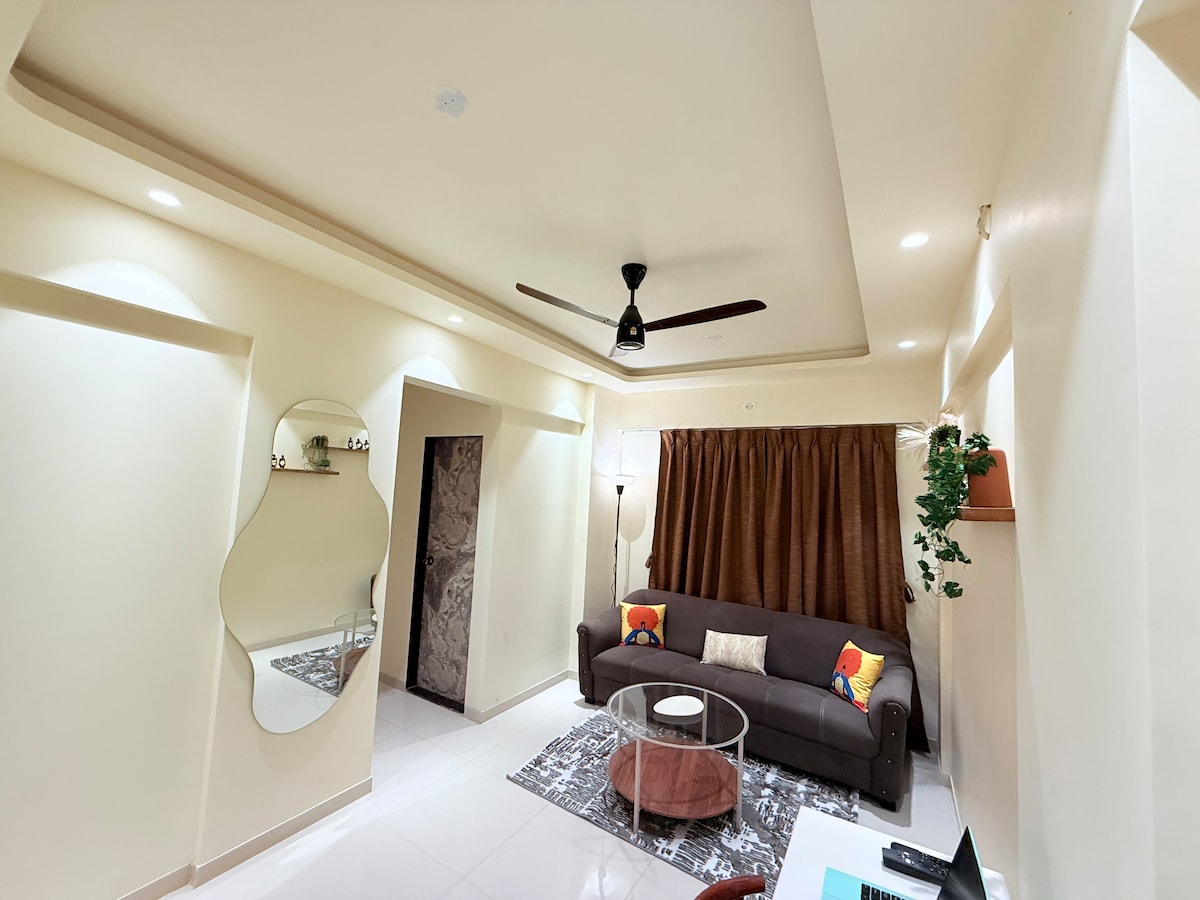 Submergeix-te en la tranquil·litat a Casa Blue, el nostre espaiós apartament de 2 habitacions inspirat en l'oceà. Amb tons blaus suaus i detalls alegres, aquest allotjament evoca la calma del mar, ideal per als viatgers que busquen un ambient refrescant i serè. Aeroport internacional de Navi Mumbai (propost) - 3,7 km CBD Belapur - 9,5 km Hospital Apollo – 9 km Estació de tren de Kharkhoper - 10 min a peu A 30 minuts en cotxe de l'estació CST a través d'Atal Setu (s'aplica peatge) Estadi DY Patil - 11 km El teu petit racó d'oceà, a la ciutat. 🌊.