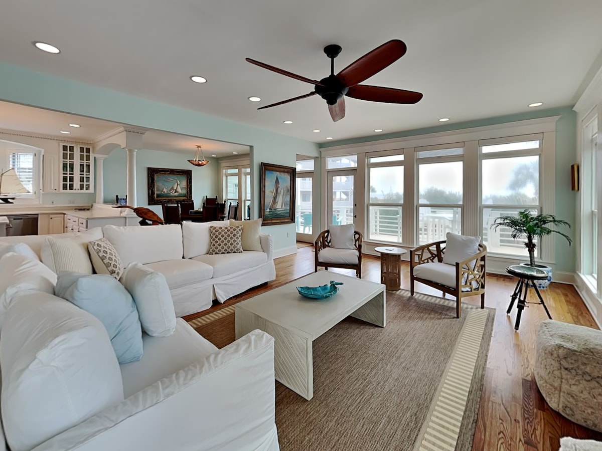 Et dono la benvinguda a Water Oak Cottage, un impressionant allotjament a primera línia de mar. - S'inclou un carret de golf de 4 passatgers per a qualsevol reserva creada a partir del 31/12/25 - Decoració luxosa amb obres d'art costaneres - Planta oberta amb seients còmodes i un televisor gran de pantalla plana - Cuina totalment equipada i porxo amb mosquiter amb vistes al mar - Dormitori principal amb llit «king size» i bany privat - Segon dormitori amb dos llits «queen size» i bany privat. - Aquesta propietat només permet carros de golf elèctrics.