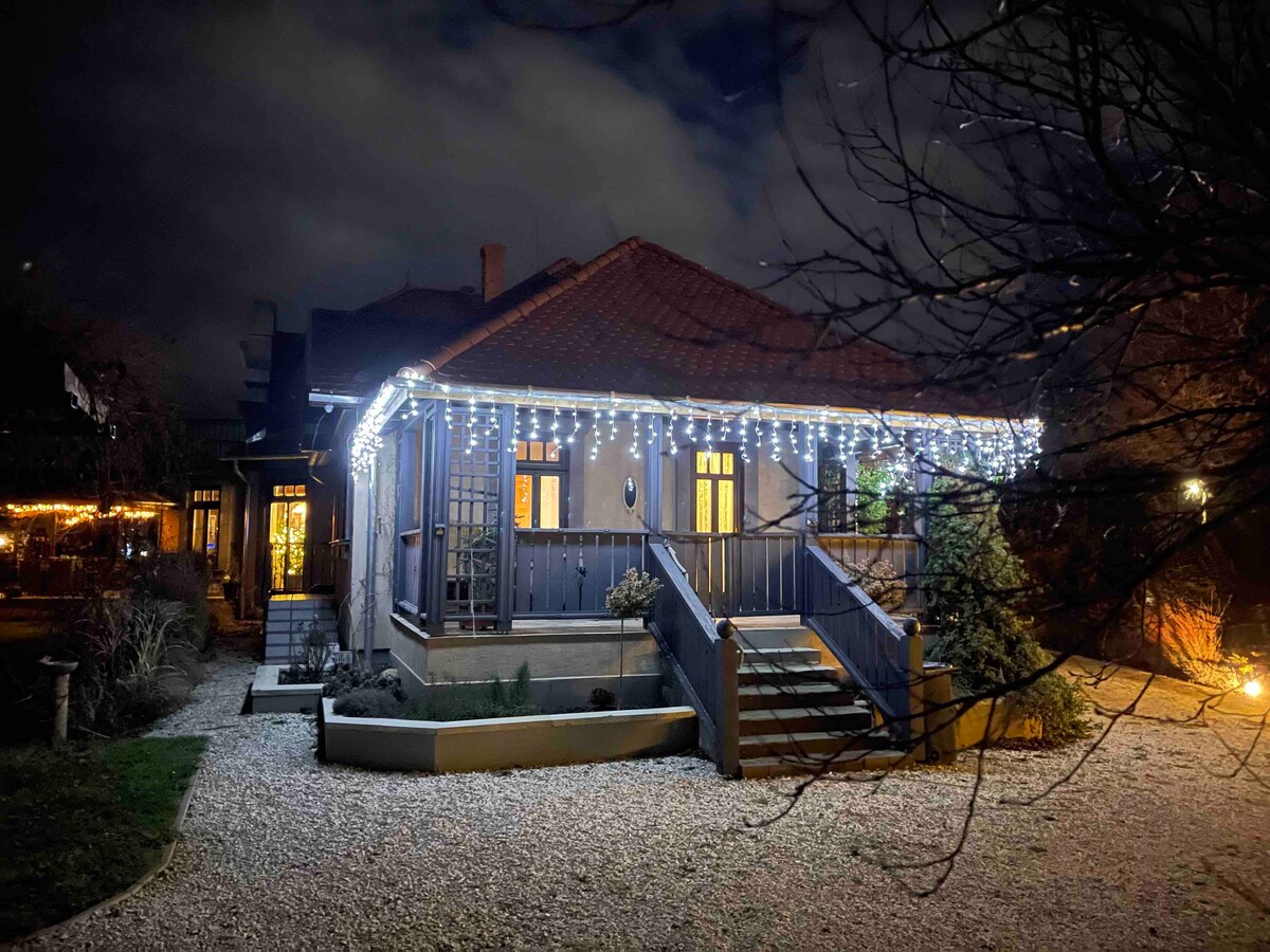El nostre pis té 1 dormitori, 1 dormitori amb galeria, 1 sala d'estar amb cuina americana, 1 bany i una gran terrassa a la graella que s'obre des de la sala d'estar, garatge tancat. No gaire lluny de nosaltres es troba el Bany Termal Szent András (500m), el Castell d'Andrássy i innombrables programes,però si això no fos suficient, tenim un jardí meravellós, a l'estiu proporciona relaxació no només per als adults a la piscina, sinó també per als nens, i a l'hivern pots gaudir del jacuzzi sota la terrassa coberta.