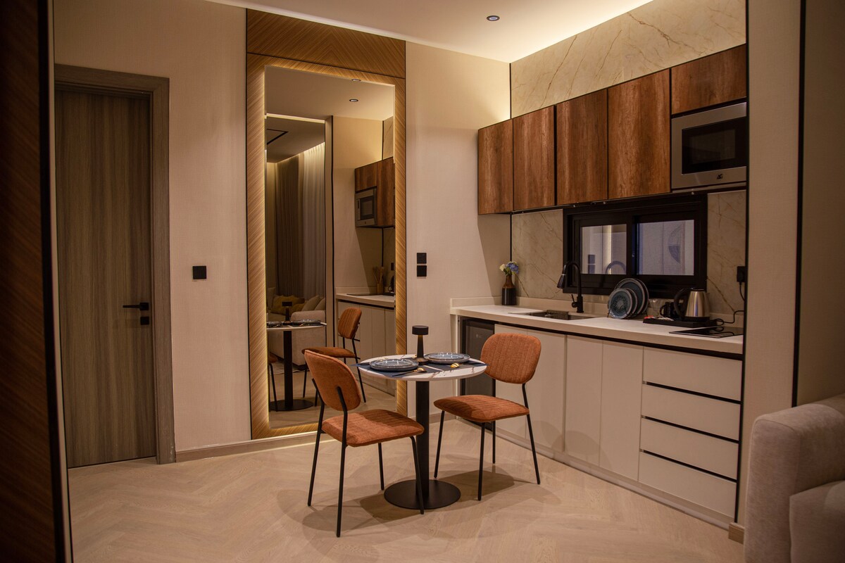 ✨ Pis de luxe modern a prop de King Abdulaziz Road Gaudeix d'una estada còmoda i luxosa en un apartament d'un dormitori totalment moblat, situat a prop de King Abdulaziz Road, ideal per a persones solteres, parelles i homes de negocis. L'apartament té una sala d'estar fantàstica amb un disseny modern i elegant, un dormitori còmode i una pantalla de 75 polzades per a una experiència visual excel·lent. L'apartament disposa d'un minibar equipat amb tots els serveis bàsics, un bany modern i wifi ràpid. La ubicació és a prop de restaurants, cafeteries, centres comercials i els llocs més importants de la ciutat, amb un accés fàcil a King Road. Comoditat, luxe i ubicació perfecta en un sol lloc