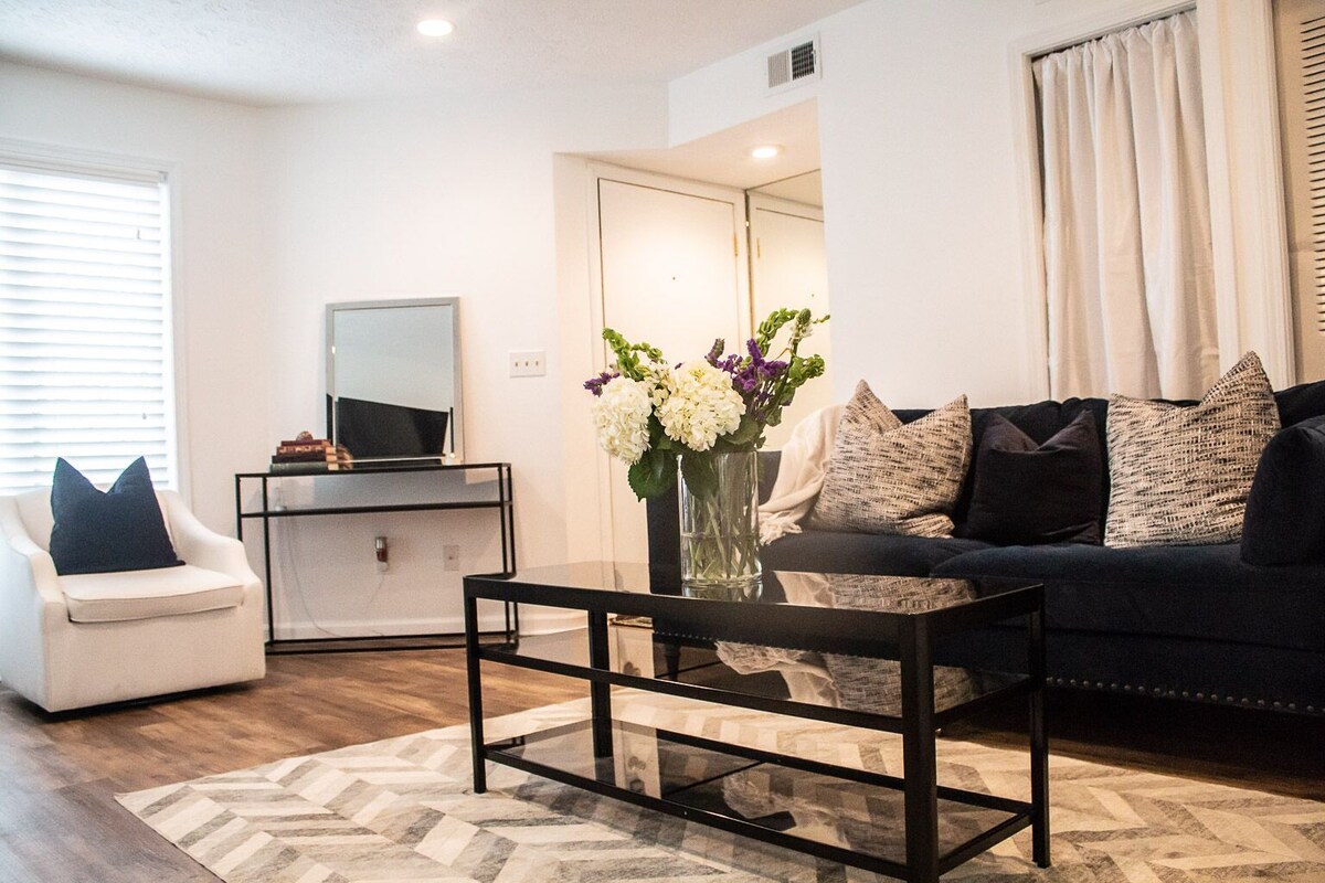 Gaudeix del millor de Louisville en aquest elegant allotjament d'1 dormitori i 1 bany al centre de la ciutat! Perfecte per a parelles, famílies o amics, disposa d'un llit doble acollidor, 2 llits plegables, una cuina totalment equipada i una sala d'estar lluminosa. Gaudeix d'un cafè al matí o d'una copa al vespre al teu balcó privat, passeja pels restaurants i bars propers, relaxa't a la piscina o a la banyera d'hidromassatge, juga una ronda al simulador de golf o relaxa't amb una partida de billar. El teu punt de partida per a l'aventura o una escapada tranquil·la i amb estil quan et cal descansar!
