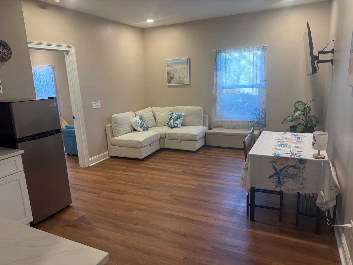 Pis bellament decorat amb un disseny còmode a la costa. Inclou una cuina de mida completa totalment equipada per a estades curtes o llargues, llençols de qualitat i extres. Terres de fusta originals a l'acollidora sala d'estar. El sofà té un sofà llit per als hostes. Ubicació històrica amb encant al centre de la ciutat en un barri actiu i animat. Propietat i manteniment local!